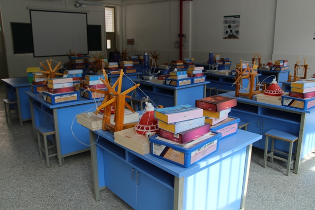 主要有各種繪圖工具、紡車模型、自動門模型、吊塔式雞用自動飲水機原理模型以及指南車組裝套件和技術與設計1和2的制作套件等和多媒體教學設備。