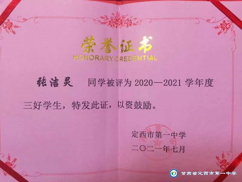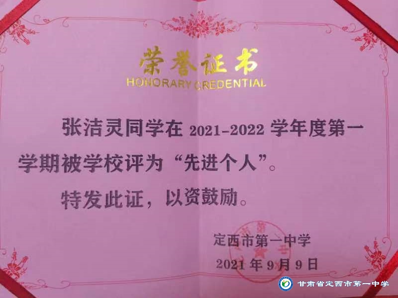 張潔靈,女,2020級12班學生,初中畢業(yè)于安定區(qū)公園路中學。她沉穩(wěn)篤定、為人正派、誠實守信、好學上進,懷抱夢想又腳踏實地,敢想敢為且善作善成,是同齡人踔厲奮發(fā)的表率。