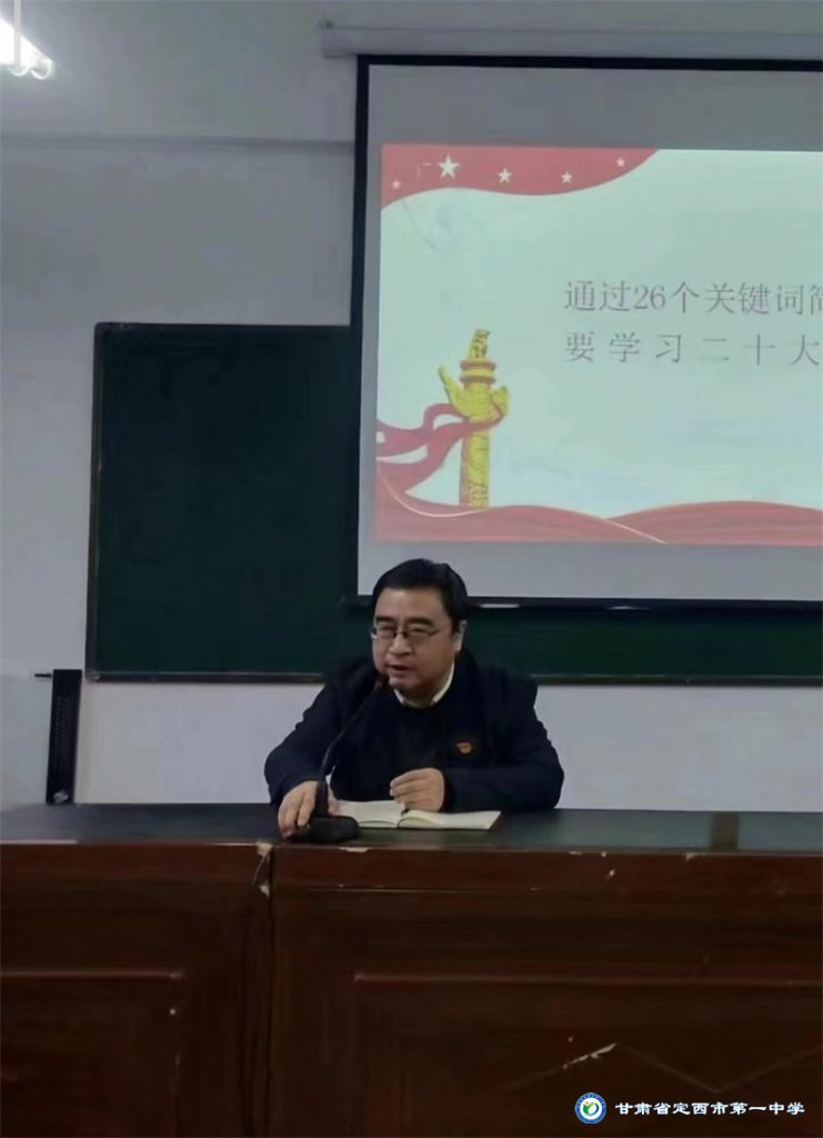 黨委書記劉順義強調(diào),學習宣傳貫徹黨的二十大精神,是當前和今后一個時期全校的首要政治任務(wù)。身為一名新時代的共產(chǎn)黨員、一名新時代的人民教師,我們要立足本職工作,聯(lián)系教學實際,深刻領(lǐng)會黨的二十大精神,不斷提升自己的理論水平,以踔厲奮發(fā)、勇毅前行的奮斗姿態(tài),推動學校教育事業(yè)高質(zhì)量發(fā)展,努力譜寫定西一中發(fā)展的新篇章。