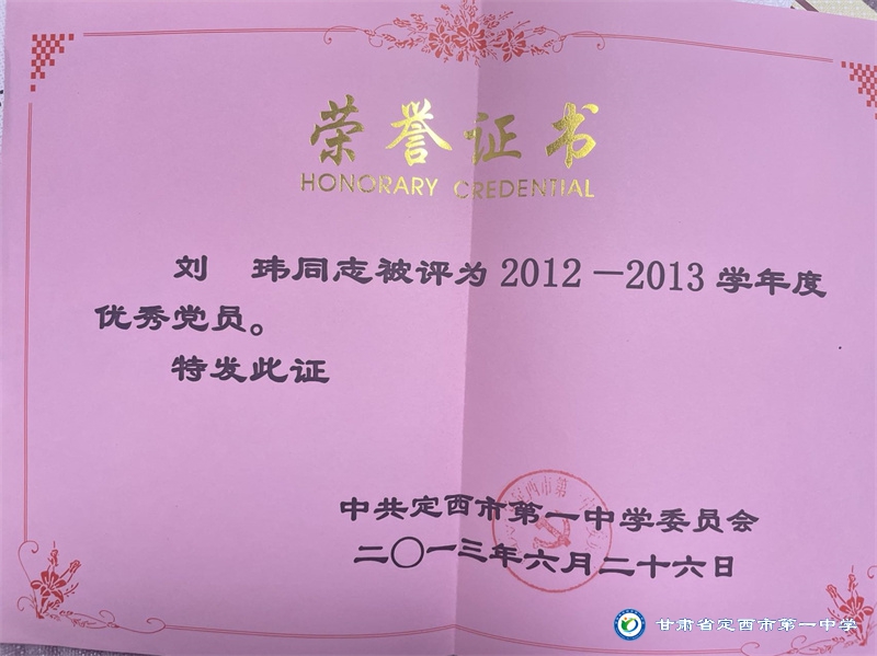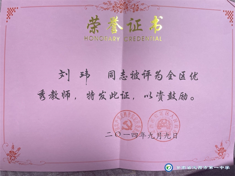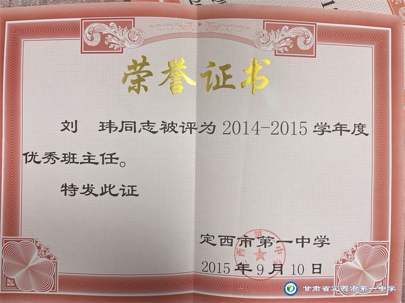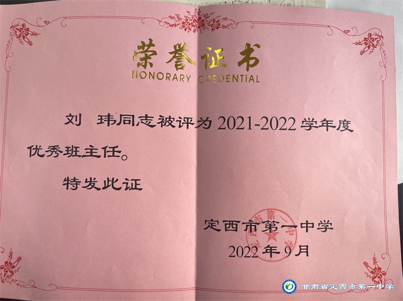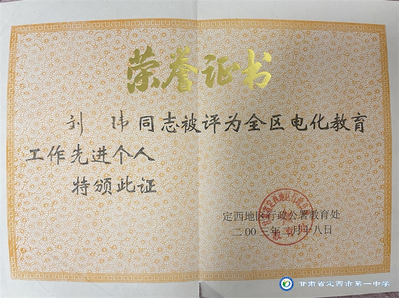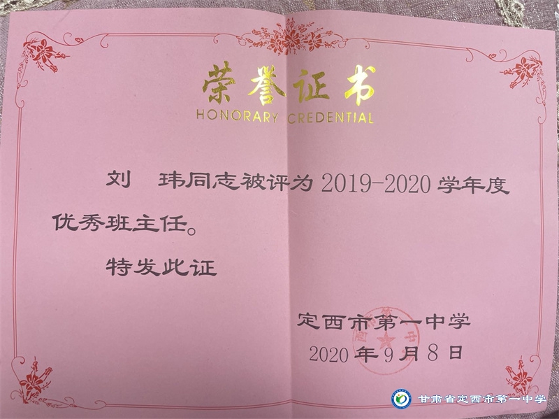 從教二十多年來,一直秉承“以德施教、育人為先”的教育理念,教導學生以“修德明理”為根基,教學與育人過程中言傳身教,為人師表。用熱愛和堅守詮釋教師職業的內涵,用實際行動踐行對教育事業的莊嚴承諾。自工作以來,先后獲得定西地區電化教育工作先進個人、定西市中小學骨干教師、安定區優秀教師等榮譽稱號;并多次榮獲定西市第一中學優秀班主任、優秀教師和優秀共產黨員稱號。