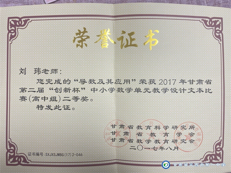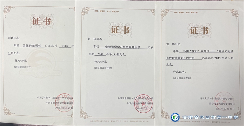 在教學與研究中,他兢兢業業、一絲不茍、認真探索、虛心學習。以教研促教學,力求將先進的教學理論與方法融合到課堂教學中去。劉瑋老師曾在國家級刊物《數理天地》和《中國多媒體教學學報》發表論文數篇;也曾多次在國家、省市級舉辦的各種賽事中獲獎。