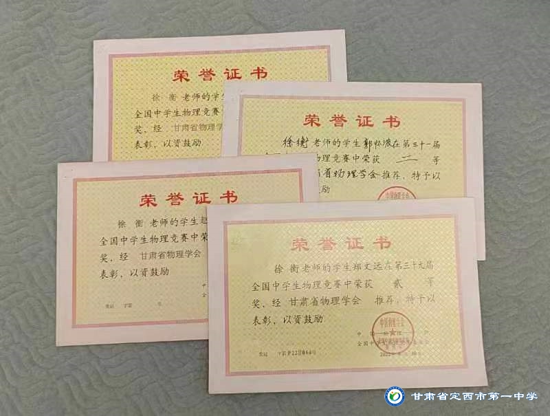 2021年12月參與定西市高中物理化學生物教師實驗技能大賽榮獲物理組二等獎。