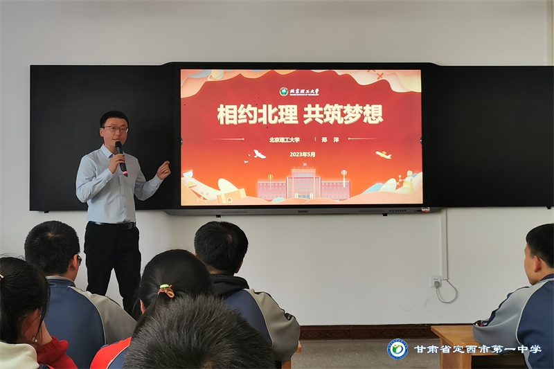 鄭洋教授從北京理工大學的歷史沿革、辦學規模、文化底蘊、優勢學科、全國排名、校園風光等方面為在場師生做了全面的介紹,還對2023年北京理工大學的招生政策進行了細致的講解,讓我校學子對北京理工大學有了更全面的認識。期間,鄭洋教授還參觀了我校校史館和美麗的校園,對我校“尚多元,成其美”的辦學理念和穩定攀升的高考成績給予了充分肯定,并感謝我校多年來為北京理工大學輸送了大批優質生源,希望更多的定西市第一中學優秀學子到北京理工大學繼續深造,實現自己的人生目標。