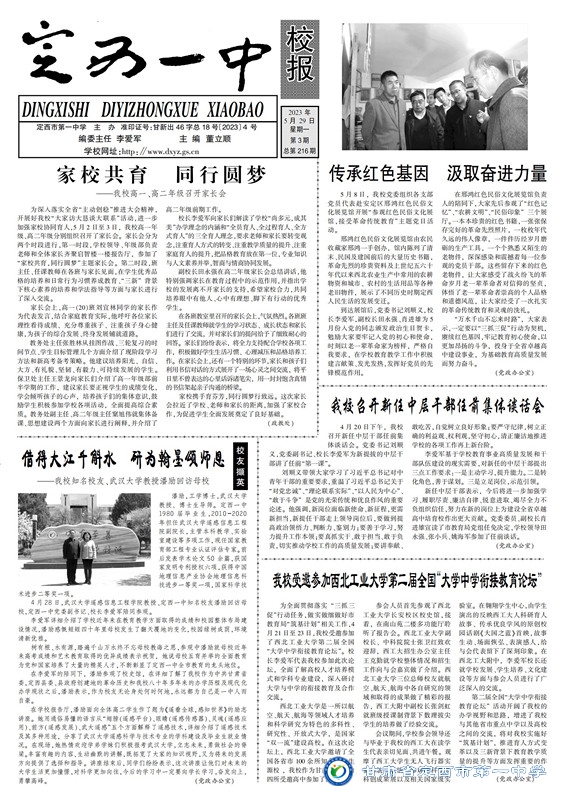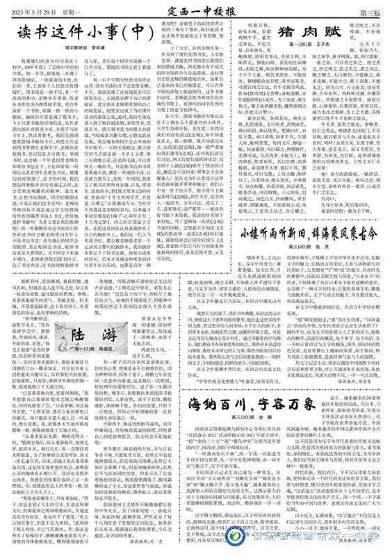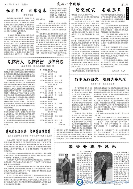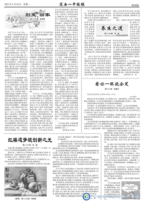 定西一中校報2023年第三期 時間:2023-06-15 分類:校報校刊 (撰稿:袁娟娟 審核:董立順 田永強 監審:肖進雄) 定西一中校報2023年第三期下載 分享: 上一個: 高中每周好題精選(5月第3周) 下一個: 定西一中校報2023年第四期 相關文章 【“三抓三促”行動進行時】定西一中校報2025年第八期 【“三抓三促”行動進行時】定西一中校報2025年第七期 【“三抓三促”行動進行時】定西一中校報2025年第六期 【“三抓三促”行動進行時】定西一中校報2025年第五期 【“三抓三促”行動進行時】定西一中校報2025年第四期 【“三抓三促”行動進行時】定西一中校報2025年第三期 【“三抓三促”行動進行時】定西一中校報2025年第二期 【“三抓三促”行動進行時】定西一中校報2025年第一期