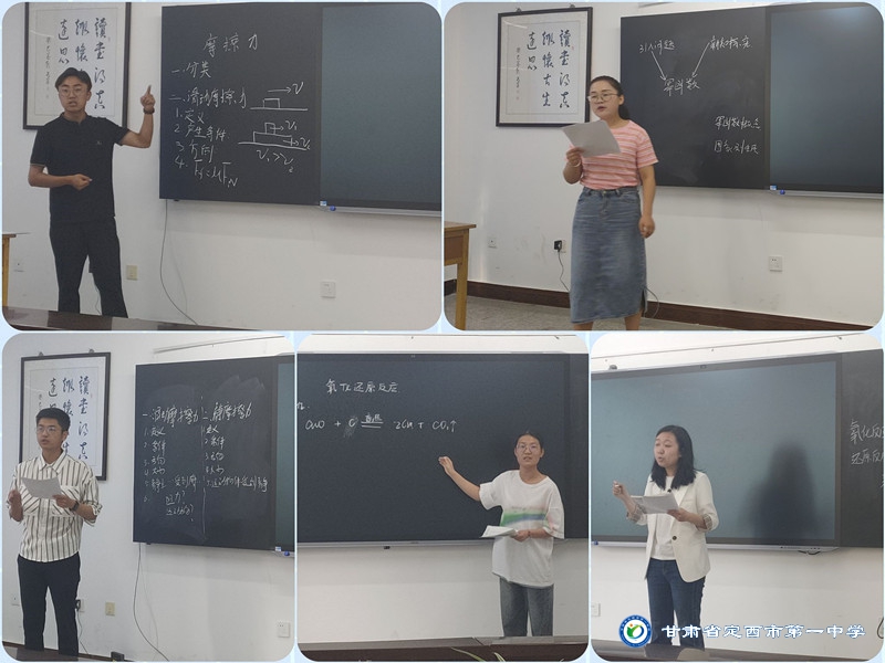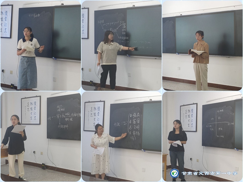 依據(jù)《定西市第一中學(xué)”青藍(lán)工程”實(shí)施方案》和《定西市第一中學(xué)2023年青年教師出師課說(shuō)課活動(dòng)實(shí)施方案》,來(lái)自語(yǔ)文、數(shù)學(xué)、物理、化學(xué)、心理健康五學(xué)科的11位青年教師,通過(guò)現(xiàn)場(chǎng)隨機(jī)抽題、限時(shí)備課的方式,借助傳統(tǒng)的黑板、粉筆等教具,從說(shuō)教材、說(shuō)目標(biāo)(重難點(diǎn))、說(shuō)教法學(xué)法、說(shuō)教學(xué)過(guò)程、說(shuō)板書設(shè)計(jì)、說(shuō)教學(xué)反思等六個(gè)方面進(jìn)行了傳統(tǒng)教具與現(xiàn)代新課程理念相結(jié)合的個(gè)性化、針對(duì)性說(shuō)課。