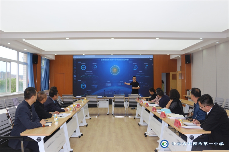 評(píng)估組一行來(lái)到我校大數(shù)據(jù)調(diào)度中心召開(kāi)座談會(huì)。中小學(xué)智慧校園建設(shè)是新型信息技術(shù)發(fā)展的必然,更是數(shù)字校園同步國(guó)家新課程改革、新高考改革及當(dāng)下教育高質(zhì)量發(fā)展的內(nèi)在要求,會(huì)上副校長(zhǎng)肖進(jìn)雄作了題為《科技力量賦能智慧教育 追趕發(fā)展創(chuàng)建卓越高中——定西市第一中學(xué)扎實(shí)深入推進(jìn)智慧校園建設(shè)工作》的工作匯報(bào),從學(xué)校智慧教育建設(shè)基本情況、智慧化建設(shè)組織結(jié)構(gòu)、師生多維度培訓(xùn)方式、學(xué)校校本資源建設(shè)情況、校際線上合作交流共享、學(xué)校信息化考核制度、學(xué)校智慧校園建設(shè)和學(xué)校信息化發(fā)展展望八個(gè)方面詳細(xì)介紹了我校智慧校園建設(shè)工作。信息中心主任羅建鑫就學(xué)校使用的智慧校園智能安防平臺(tái)、電子班牌、網(wǎng)上閱卷、甘肅省智慧教育平臺(tái),校園監(jiān)控等智慧化系統(tǒng)進(jìn)行了展示和講解。