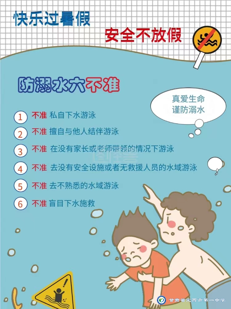 假期里,嚴禁孩子去水庫、河流、池塘等水域玩耍。孩子外出時,家長要做到“四知道”:知去向、知內容、知同伴、知歸時。切實教育孩子做到“六不”:不私自下水游泳;不擅自與他人結伴游泳;不在無家長或教師帶領的情況下游泳;不到無安全設施、無救援人員的水域游泳;不到不熟悉的水域游泳;不熟悉水性的學生不擅自下水施救。