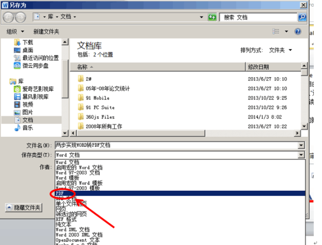 第二步:在另存為對話框,保存類型下拉列表中選擇“PDF”保存即可。