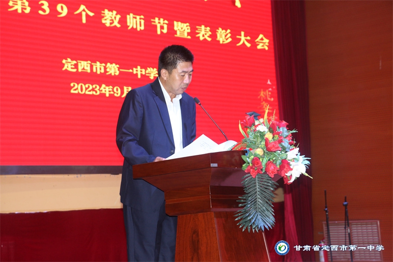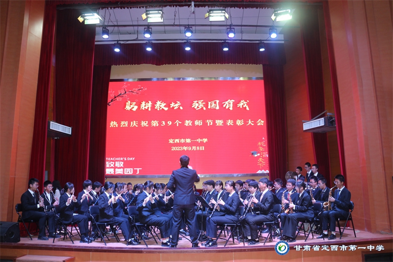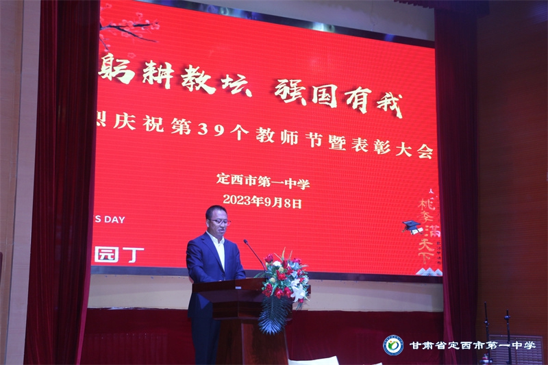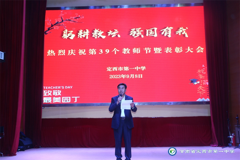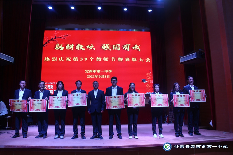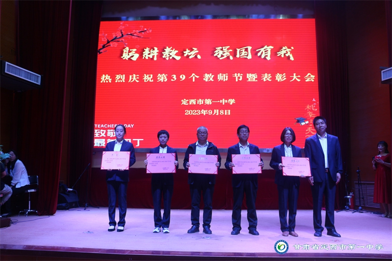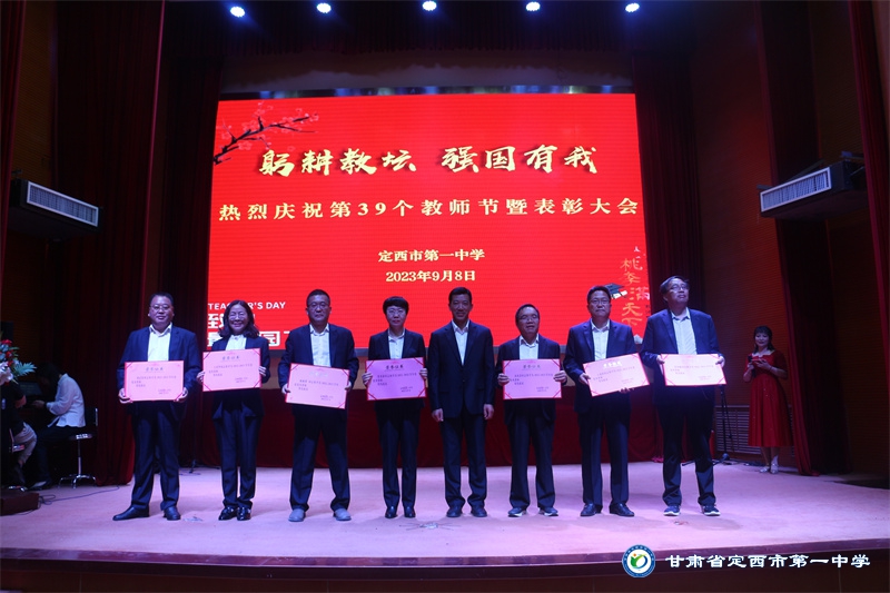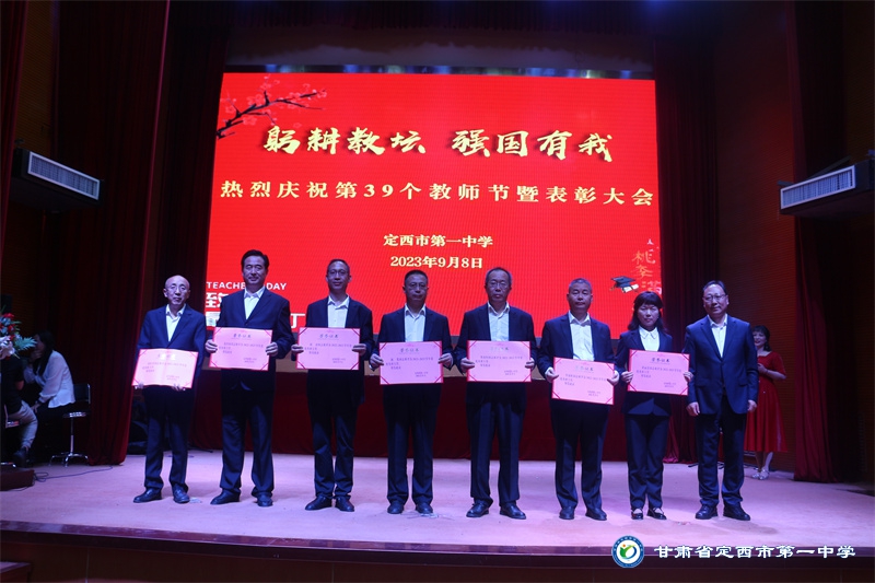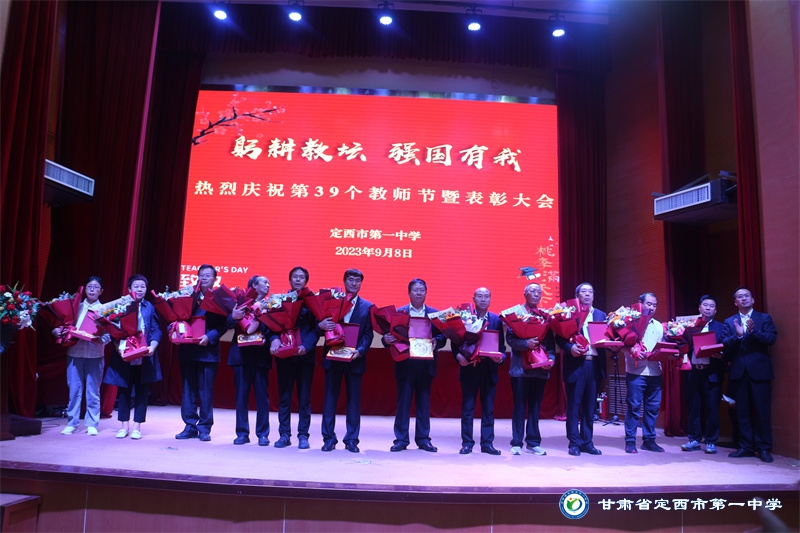 表彰聯誼活動在一曲動人的管弦合奏《鋼鐵洪流》中拉開帷幕,副校長肖進雄同志宣讀了《定西市第一中學關于表彰2022—2023學年度先進集體和優秀個人的決定》《定西市第一中學黨委關于表彰2022—2023學年度先進黨支部、優秀黨員和黨務工作者的決定》,與會領導為獲得表彰的先進備課組、優秀教師、教壇新秀、優秀班主任、優秀教育工作者、優秀備課組長等先進團體和優秀個人進行頒獎,并為榮退教師授牌,送上鮮花。