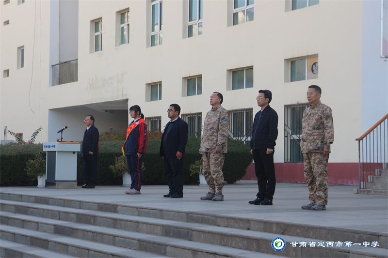 10月30日上午,我校隆重舉行首次由教育部和中央軍委政治工作部聯合授牌的“全國國防教育示范學校”揭牌儀式暨升旗儀式。定西軍分區大校、政治委員葛翔,定西軍分區政治工作處上校、主任趙效民,定西市教育局黨組成員、副局長陳永義出席揭牌儀式,我校全體師生參加,儀式由副校長張小兵主持。