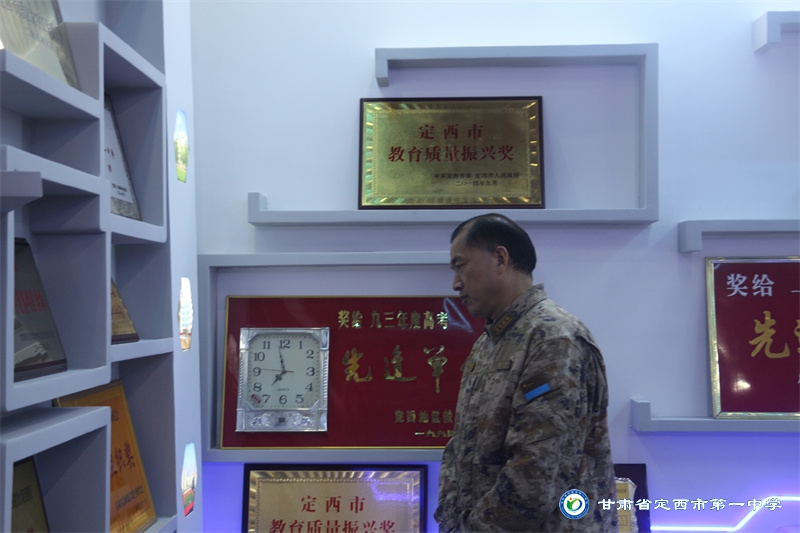 葛政委在講話中首先高度贊揚了我校師生良好的精神面貌。他聯系習近平“堅定不移走中國特色強軍之路”思想,指出“全國國防教育示范學校”將是我校國防教育發展的一個新起點。他列舉了我校國防教育方面取得的成績及畢業的優秀學子,尤其指出神舟十七號載人飛船航天員唐勝杰是定西一中的驕傲,也是定西人民的驕傲,并動情地敘述了近日去探望唐勝杰家屬的情形。他表示名師、名生、名校共同支撐起定西一中,也表達了對定西一中未來發展的期待和祝福。