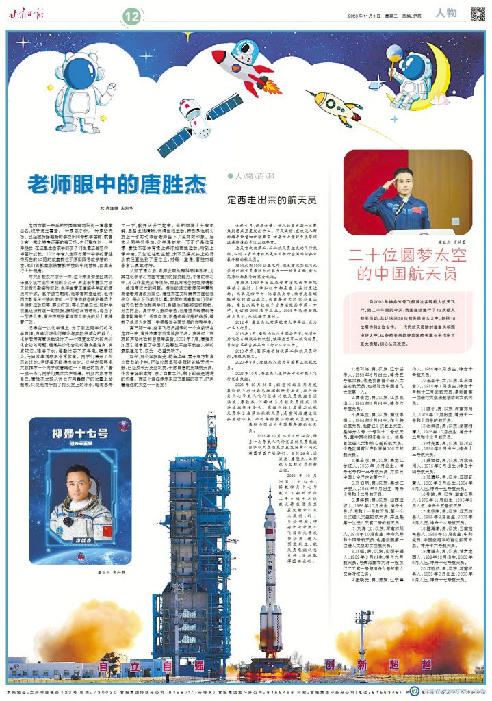 定西走出來的航天員