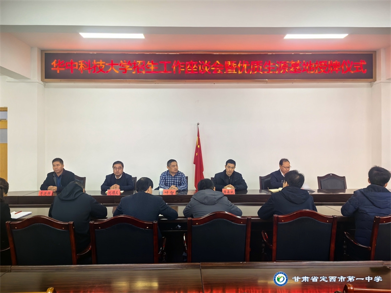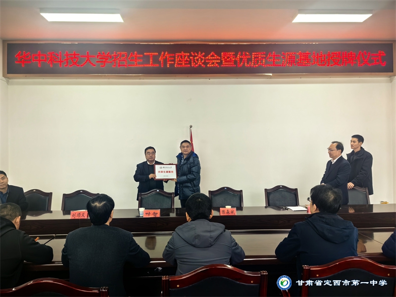 授牌儀式上,劉順義書記代表學校對華中科技大學教授的到來表示熱烈的歡迎、向華中科技大學對定西一中一直以來的關心支持表示衷心的感謝,他簡要介紹了我校的辦學理念和近些年高考取得的突出成績,并希望以此次活動為契機,進一步加強與華中科技大學的交流合作,攜手共進,為祖國培養更多的棟梁之材。隨后,華中科技大學為我校授予了“華中科技大學優質生源地”牌匾。