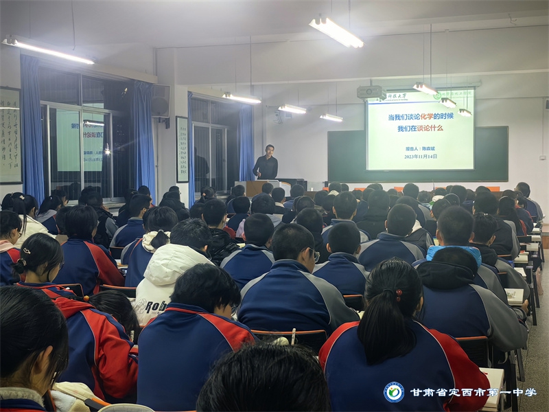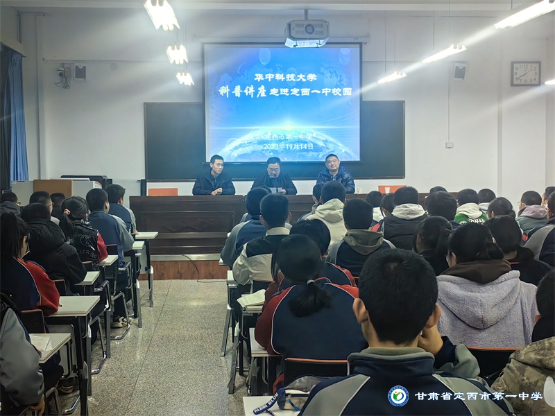 11月14日至15日,華中科技大學招生工作座談會暨優質生源基地授牌儀式在我校舉行。華中科技大學化學學院陳森斌教授、甘肅招生組組長葉智出席授牌儀式并作講座。我校黨委書記劉順義等學校領導以及高二年級部分師生參加此次活動。