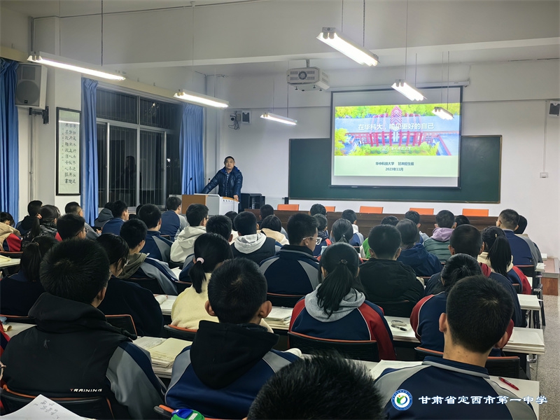 甘肅招生組組長葉智以“在華中科技大學‘喻見’更好的自己”為題為我校師生作宣講。在宣講中,他詳細介紹了華中科技大學的歷史沿革、學科建設、專業設置、辦學理念、校園文化等,在他的動人的講述中,同學們對華中科技大學有了立體而全面的了解,對華中科技大學一流的學科建設和非凡的辦學能力有了清晰的認識。宣講結束之后,不少同學表示自己深受觸動,一定會好好學習,努力刻苦,爭取有朝一日能考入華中科技大學,實現自己科技報國的理想。