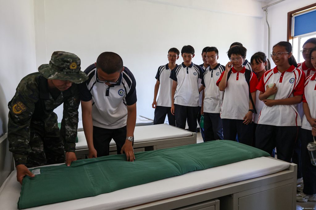 教官們時(shí)刻保持良好的軍人姿態(tài),言傳身教、以身作則,同時(shí)嚴(yán)格按照軍訓(xùn)計(jì)劃科學(xué)施訓(xùn)、靈活組訓(xùn)、文明軍訓(xùn)。通過教官的悉心指導(dǎo)和學(xué)生的親身體驗(yàn),學(xué)生學(xué)會了如何將衣物疊放地既整齊又美觀,進(jìn)一步培養(yǎng)了學(xué)生的良好生活習(xí)慣和自律精神,?也提高了學(xué)生的自我管理能力和獨(dú)立生活能力,?幫助他們樹立良好的個(gè)人形象。