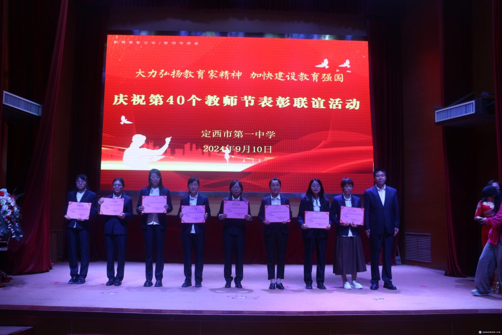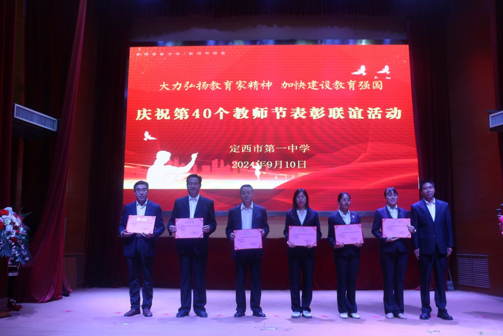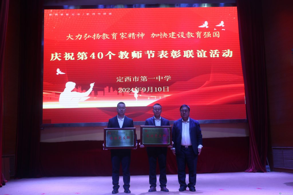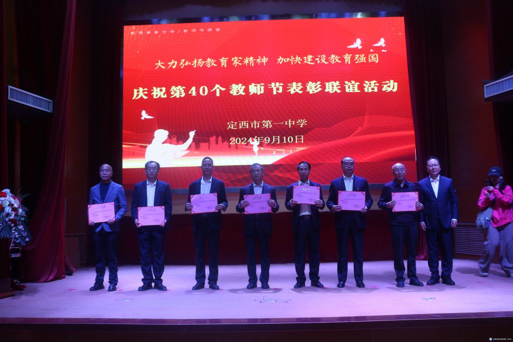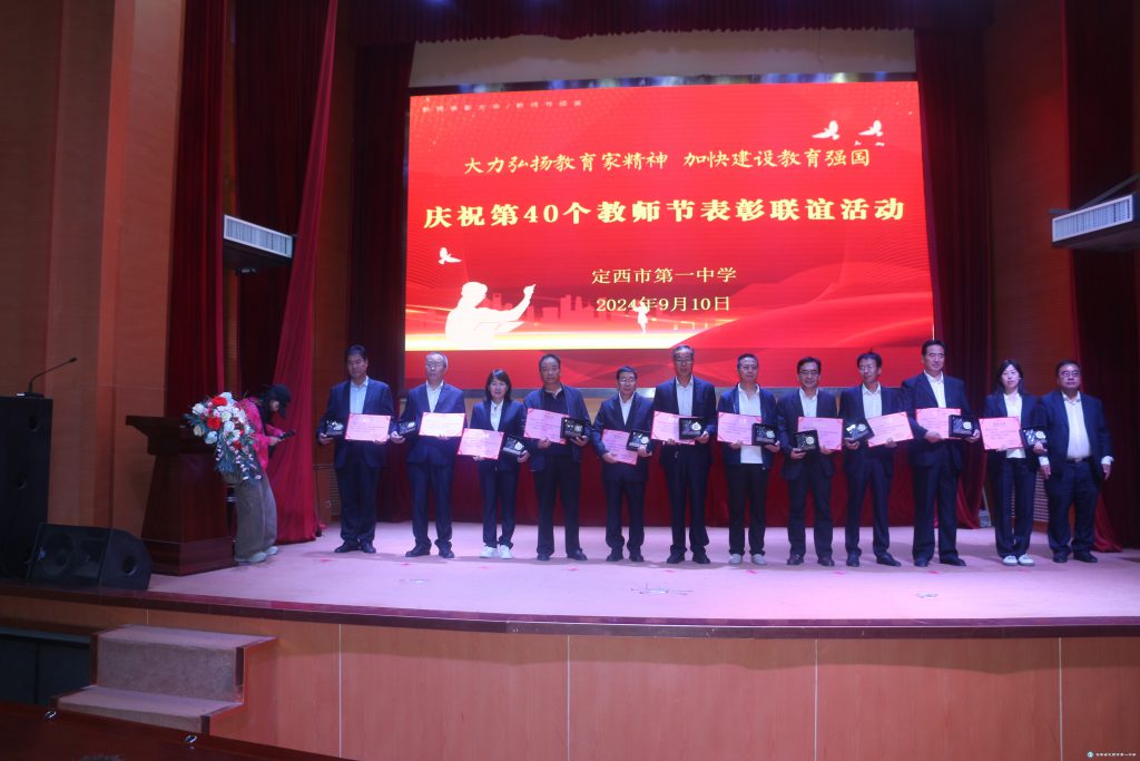 表彰聯(lián)誼活動在一曲動人的器樂合奏《紅色娘子軍聯(lián)歌》中拉開帷幕。副校長肖進雄同志宣讀我校獲得市、區(qū)級表彰的個人名單和《定西市第一中學關于表彰2023-2024學年度先進集體和優(yōu)秀個人的決定》《定西市第一中學黨委關于表彰2023-2024學年度先進黨支部、優(yōu)秀黨員和優(yōu)秀黨務工作者的決定》,與會領導為獲得表彰的優(yōu)秀教師、優(yōu)秀集體頒獎,為我校勤勤懇懇工作三十年的教師們頒發(fā)紀念牌,并為榮退教師授牌,送上鮮花。