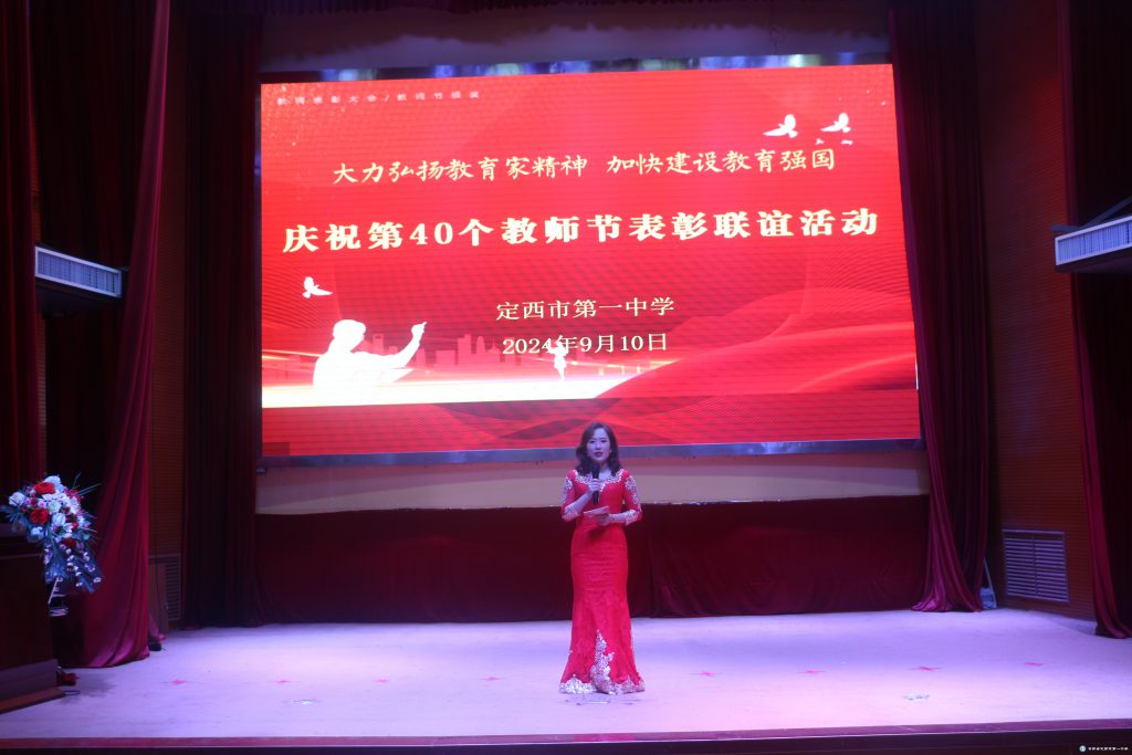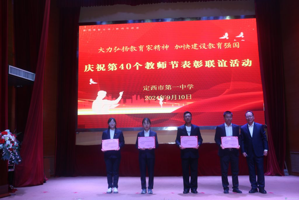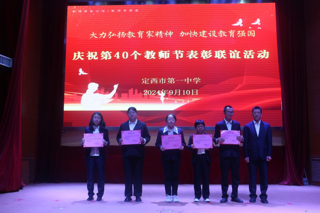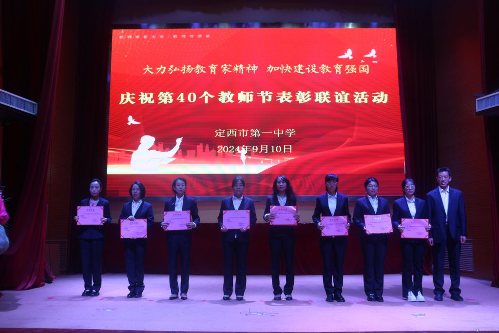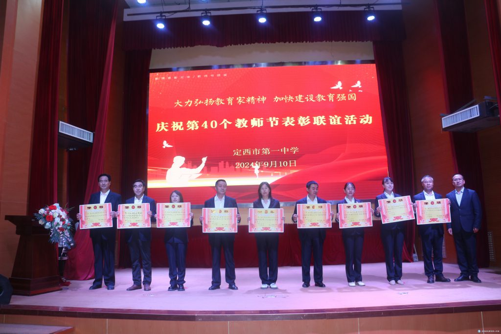 表彰聯(lián)誼活動在一曲動人的器樂合奏《紅色娘子軍聯(lián)歌》中拉開帷幕。副校長肖進雄同志宣讀我校獲得市、區(qū)級表彰的個人名單和《定西市第一中學關于表彰2023-2024學年度先進集體和優(yōu)秀個人的決定》《定西市第一中學黨委關于表彰2023-2024學年度先進黨支部、優(yōu)秀黨員和優(yōu)秀黨務工作者的決定》,與會領導為獲得表彰的優(yōu)秀教師、優(yōu)秀集體頒獎,為我校勤勤懇懇工作三十年的教師們頒發(fā)紀念牌,并為榮退教師授牌,送上鮮花。