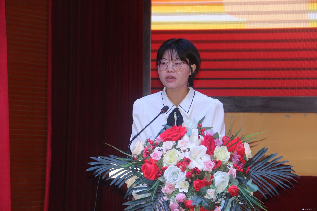 石麗紅代表新教師發(fā)言,作為一名剛剛踏上講臺的新老師,她將努力向優(yōu)秀的教師前輩們學習,以高尚的道德情操和嶄新的精神風貌干好本職工作。懷揣理想,腳踏實地,奮勇前行,努力成為一名“四有”好教師,用理想引領方向,用奮斗書寫青春篇章,為學校的發(fā)展做出貢獻!