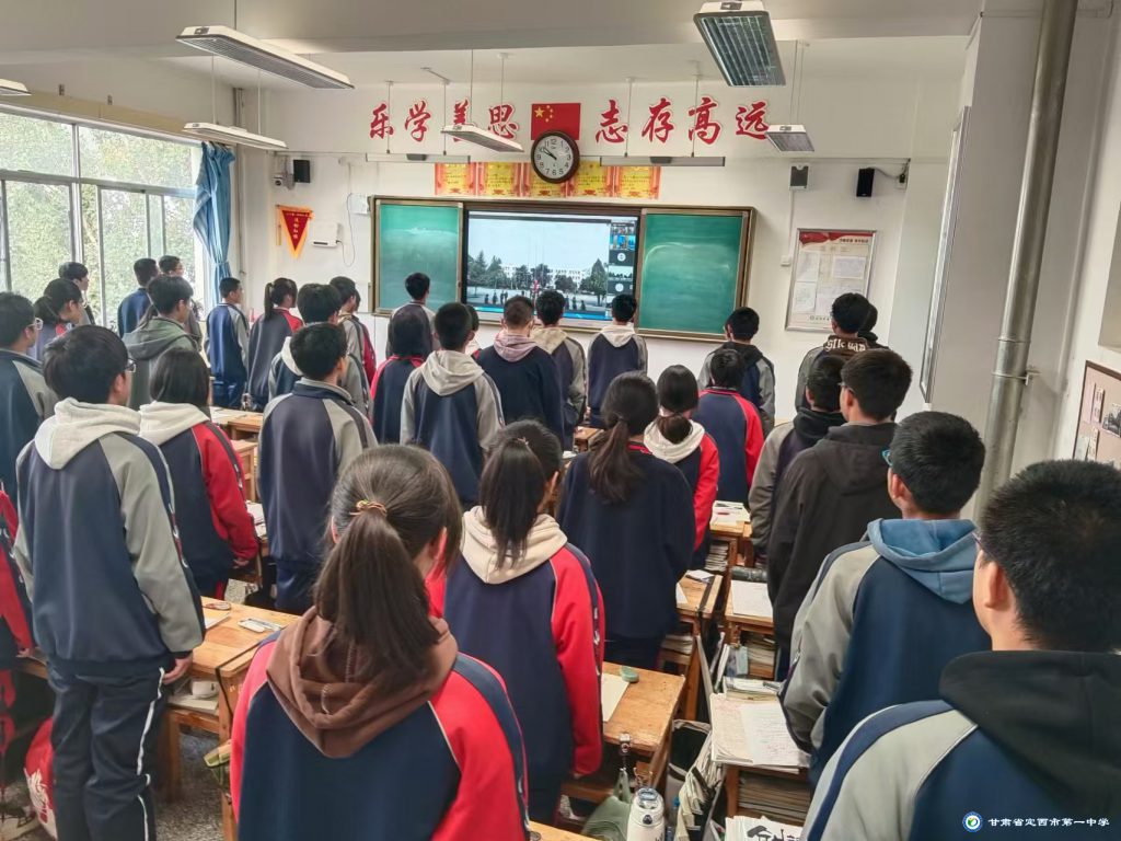 升旗儀式上,我校師生和中國人民解放軍92677部隊的官兵們,通過網絡平臺相聚線上,共同見證了這一莊嚴而神圣的時刻。隨著雄壯的國歌聲響起,五星紅旗緩緩升起,全校師生及官兵們肅立注目,齊唱國歌,表達了對祖國的無限熱愛和崇高敬意。