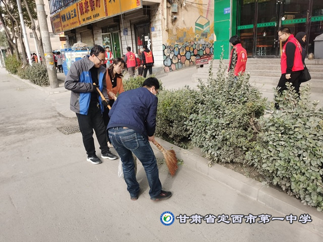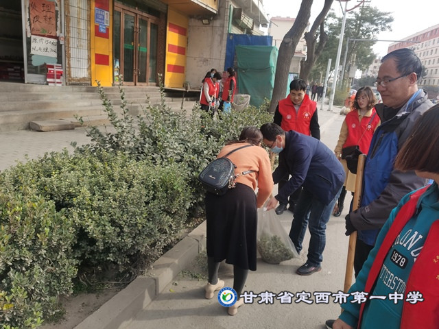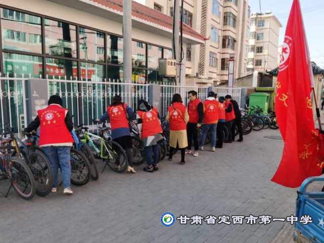 活動現場,在黨支部書記陳玉琴的帶領下,全體黨員志愿者帶上勞動工具活躍在定西市正龍路及交通南路,街邊正在享受愜意生活的市民們身旁多了一些忙碌的“紅馬甲”。我們擼起袖子,積極參與,在我黨支部全體黨員的默契配合下,路旁凌亂的自行車和電動車被一一擺放整齊;路邊及樹叢里的煙頭、紙屑、枯葉被我們一掃而空;行人在我們的指引下沿著人行道更安全地通過馬路。我們的志愿者變成了此時城市里最亮麗的一道風景線。