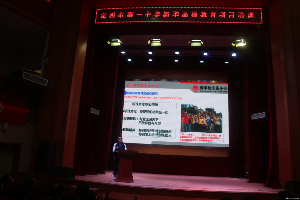 作為甘肅省中小學德育工作六星校,近年來,我校高度重視德育工作,緊緊圍繞立德樹人根本任務,積極探索德育工作的有效方式方法,不斷轉變育人理念,拓寬育人思路,拓展育人載體,追求育人實效,形成了自己的育人特色和亮點。此次專題培訓活動,進一步凝聚了全校師生對我校開展品格教育的共識,明確了品格教育的重要意義和深遠影響,必將積極推動浙江省新華愛心教育基金會品格教育項目在我校落地生根、結出碩果。今后,學校將深入開展德育微行動,以活動為具體抓手,通過活動育人,大力實施品格教育,努力把學生培養成德智體美勞全面發展的社會主義建設者和接班人。
