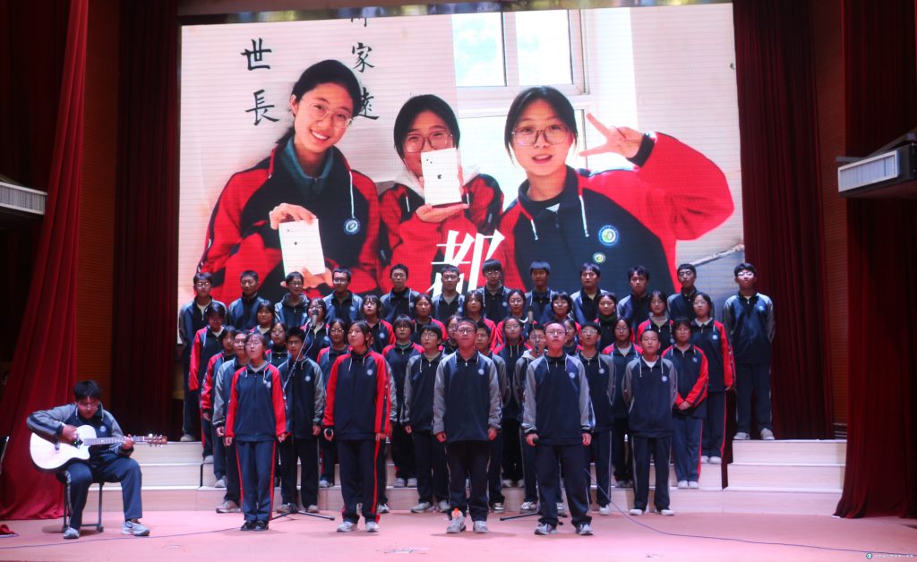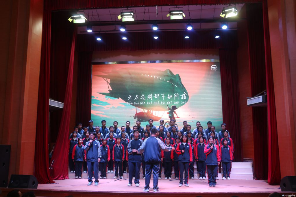 報告廳內座無虛席,氣氛熱烈。各班同學在班主任的帶領下,隊列有序,服裝整齊,精神飽滿。舞臺上,同學們面帶微笑,朝氣蓬勃,歌聲響亮、情感真摯,極富穿透力和感染力。他們用歌聲展現激情與夢想,用音樂傳遞青春正能量。