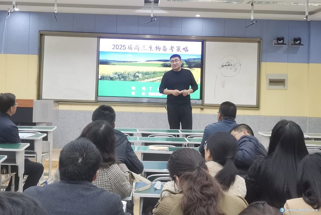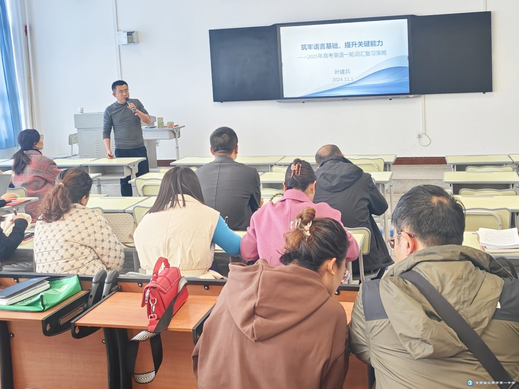 思想是行動的先導,理論是實踐的指南。視導團隊英語學科葉建兵、生物學科丁昊、政治學科達毅、歷史學科張立軍四位老師就如何及時總結經驗、高效備考2025年高考,分別以《筑牢語言基礎,提升關鍵能力——2025年高考英語一輪詞匯復習策略》《2025屆高三生物備考策略》《新高考背景下思政課教學策略》《且行且思,科學謀劃;精準定位,高效備考——2025年高考歷史一輪復習備考策略》為主題分享專題講座。內容全面,針對性強,對2024年高考作出全方位剖析;策略有效,啟發性強,為我校下階段高效備考指明方向。