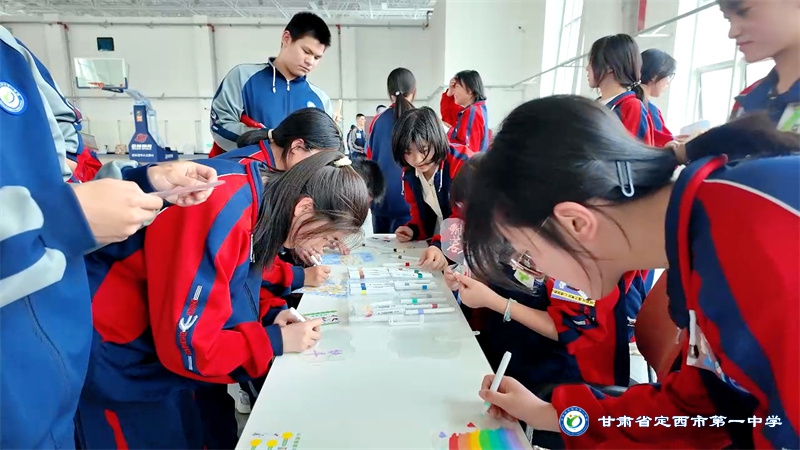 請與我擊掌:彩色掌印在展板上組成“陽光彩虹”,每一次擊掌都是陌生人之間的溫暖聯結,不少學生笑著說:“原來簡單的互動也能讓人心情變好!”