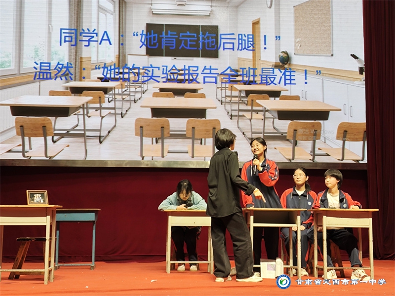 高一3班的劇目《都是為了你好》直擊家庭教育痛點(diǎn)。劇中,家長(zhǎng)打著“愛”的旗號(hào),用陳舊的思想壓制孩子的想法,長(zhǎng)期忽視孩子的心理健康。這一劇情引發(fā)了現(xiàn)場(chǎng)師生對(duì)于親子溝通與心理健康教育的深刻反思。