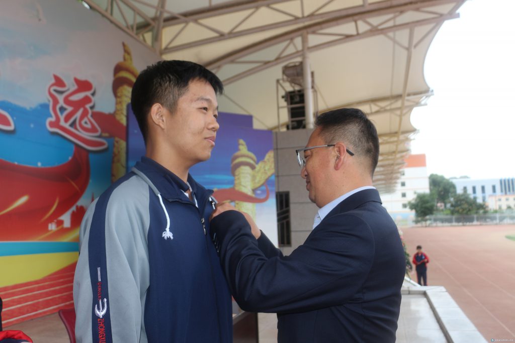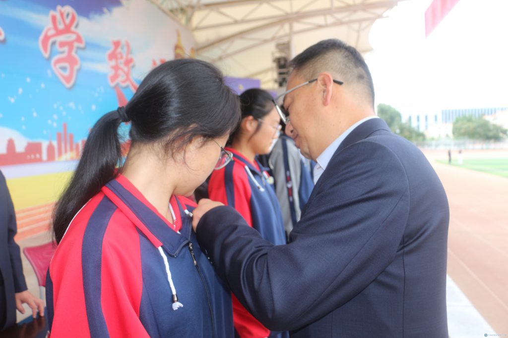 接著,李校長為新生代表佩戴校徽,小小的校徽承載著學校的期望與傳承,標志著新生們正式成為定西市第一中學的一員。