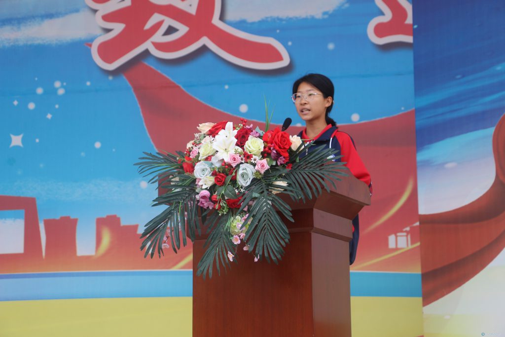 高一新生代表王文睿同學發言,她表達了對高中生活的期待,也展現出新生們積極向上的精神風貌。