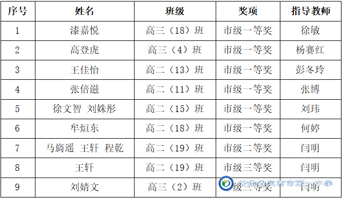 定西市第七屆中華經典誦讀寫講大賽市級初賽我校獲獎學生名單