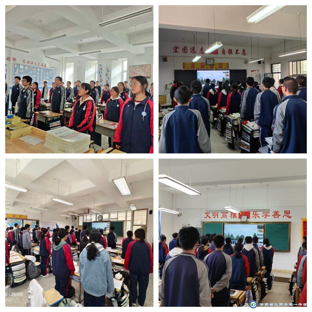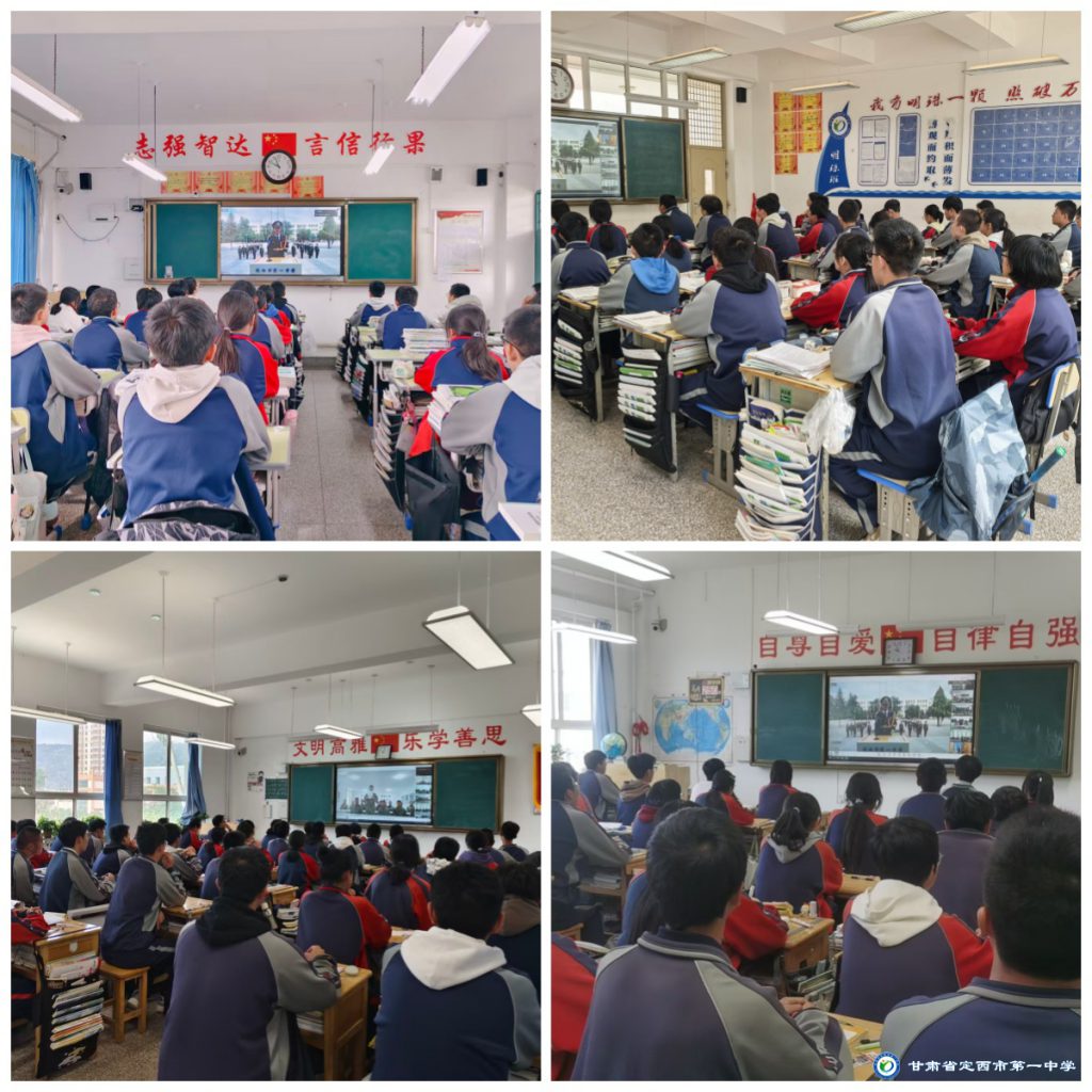 在第十二個烈士紀念日這個莊嚴時刻,我校與安定區東關小學、西關小學及青島92677部隊海防官兵跨越山河,聯合開展“同升國旗,強國有我”線上主題活動,共同緬懷英烈,砥礪強國之志。上午9時50分,在雄壯的國歌聲中,五星紅旗在定西一中主會場升起,三校師生與邊防官兵線上線下同步參與。