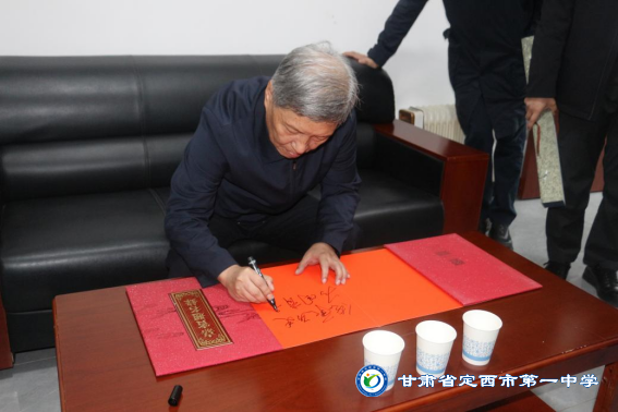 報告尾聲,學生代表向王樹國校長獻花致敬,黨委書記劉順義代表定西一中向王樹國校長贈獻書畫作品致謝。現場交流環節氣氛熱烈。學子們圍繞報告主題,結合學習困惑踴躍提問,王校長逐一回應解答。