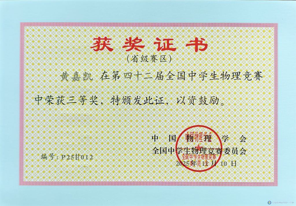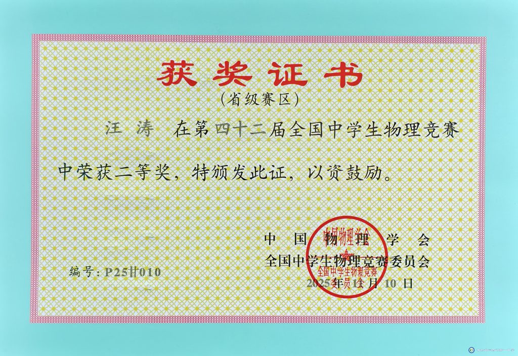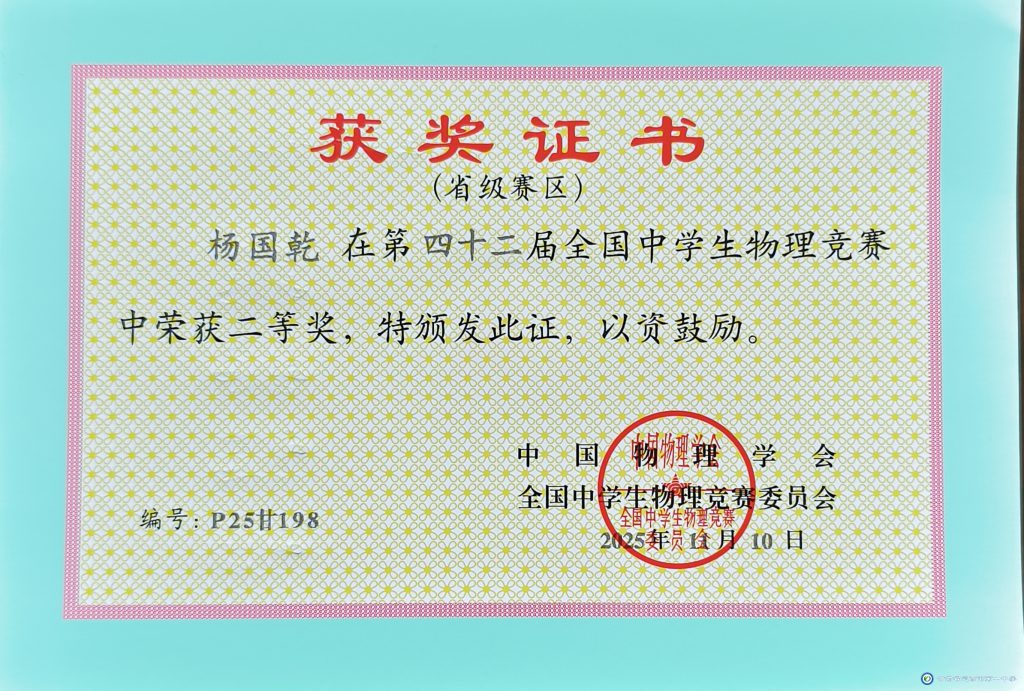 喜報——我校學(xué)子在2025年第42屆全國中學(xué)生物理競賽甘肅聯(lián)賽中榮獲佳績 時間:2025-12-03 分類:三抓三促/ 教研成果 在2025年第42屆全國中學(xué)生物理競賽甘肅聯(lián)賽中,我校4人參賽,4人獲獎。其中省級一等獎1人,省級二等獎2人,省級三等獎1人。 (撰稿:董立順 審核:王景龍 田永強 監(jiān)審:水晶) 分享: 上一個: 定西一中“對話名校 筑夢未來”系列活動|哈爾濱工業(yè)大學(xué)專場 相關(guān)文章 定西一中“對話名校 筑夢未來”系列活動|哈爾濱工業(yè)大學(xué)專場 【區(qū)域聯(lián)動 眾行致遠(yuǎn)】智慧共享 ?智研共贏 【研經(jīng)悟理 授業(yè)傳道】廣學(xué)集智逐光行,求變則通耘夢田 【“三抓三促”行動進行時】定西一中校報2025年第八期 【“三抓三促”行動進行時】師徒同心展匠心 青藍攜手綻芳華 【“三抓三促”行動進行時】幫扶搭臺連校際 互鑒同行共育人 【“三抓三促”行動進行時】區(qū)域聯(lián)動促深度交流?攜手并進謀共同發(fā)展 【“三抓三促”行動進行時】喜報——我校學(xué)子在2025年全國中學(xué)生數(shù)學(xué)奧林匹克競賽甘肅賽區(qū)聯(lián)賽中榮獲佳績