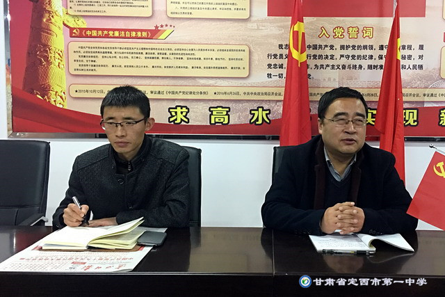 2017年10月25日17時,在學校黨委的統一安排部署下,定西市第一中學政史地英黨支部順利召開黨小組會議。會議由政史地英黨支部組織委員陳曉東同志主持,校黨委委員、副校長劉順義同志出席會議并發表講話。
