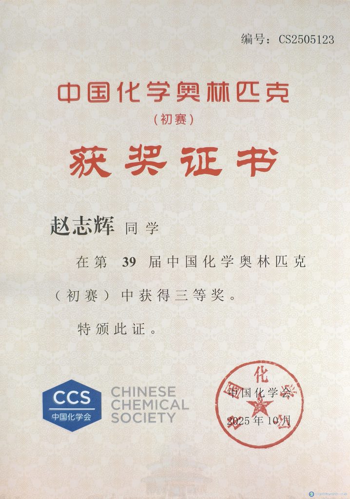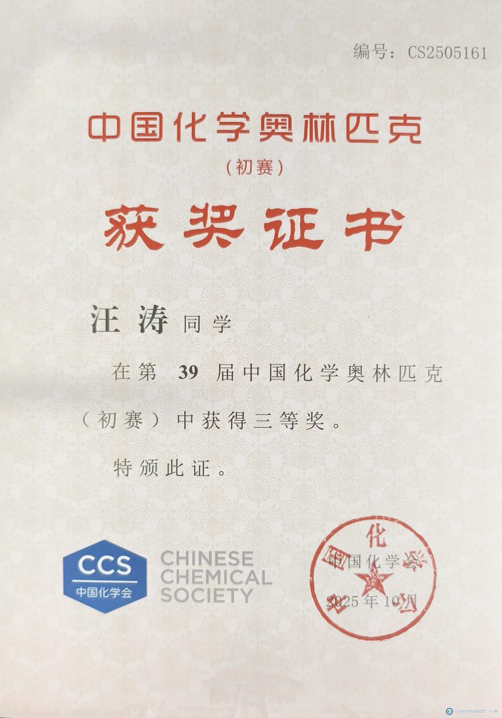 喜報(bào)——我校學(xué)子在第39屆中國(guó)化學(xué)奧林匹克競(jìng)賽甘肅聯(lián)賽中榮獲佳績(jī) 時(shí)間:2025-12-17 分類:三抓三促/ 教研成果 在2025年第39屆中國(guó)化學(xué)奧林匹克競(jìng)賽甘肅聯(lián)賽中,我校1人獲省級(jí)一等獎(jiǎng),1人獲省級(jí)二等獎(jiǎng),5人獲省級(jí)三等獎(jiǎng)。 (撰稿:董立順 審核:王景龍 田永強(qiáng) 監(jiān)審:水晶) 分享: 上一個(gè): 喜報(bào)——我校學(xué)子在2025年第42屆全國(guó)中學(xué)生物理競(jìng)賽甘肅聯(lián)賽中榮獲佳績(jī) 相關(guān)文章 喜報(bào)——我校學(xué)子在2025年第42屆全國(guó)中學(xué)生物理競(jìng)賽甘肅聯(lián)賽中榮獲佳績(jī) 定西一中“對(duì)話名校 筑夢(mèng)未來(lái)”系列活動(dòng)|哈爾濱工業(yè)大學(xué)專場(chǎng) 【區(qū)域聯(lián)動(dòng) 眾行致遠(yuǎn)】智慧共享 ?智研共贏 【研經(jīng)悟理 授業(yè)傳道】廣學(xué)集智逐光行,求變則通耘夢(mèng)田 【“三抓三促”行動(dòng)進(jìn)行時(shí)】定西一中校報(bào)2025年第八期 【“三抓三促”行動(dòng)進(jìn)行時(shí)】師徒同心展匠心 青藍(lán)攜手綻芳華 【“三抓三促”行動(dòng)進(jìn)行時(shí)】幫扶搭臺(tái)連校際 互鑒同行共育人 【“三抓三促”行動(dòng)進(jìn)行時(shí)】區(qū)域聯(lián)動(dòng)促深度交流?攜手并進(jìn)謀共同發(fā)展