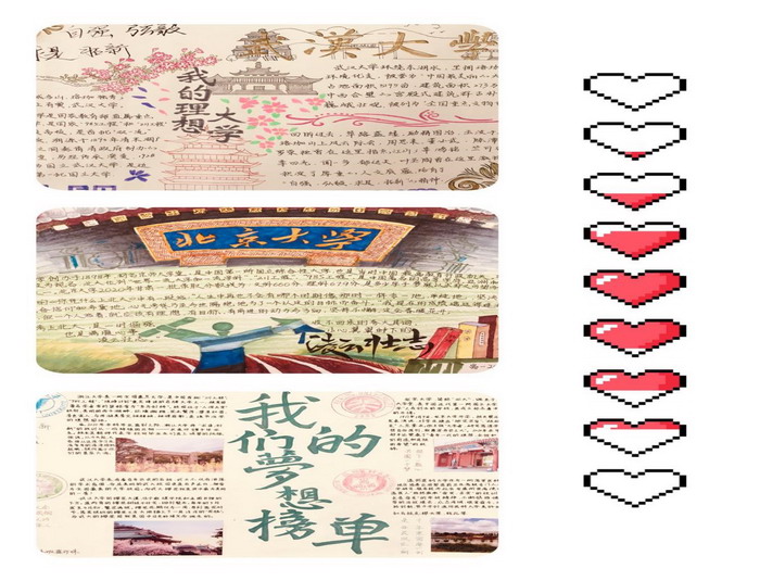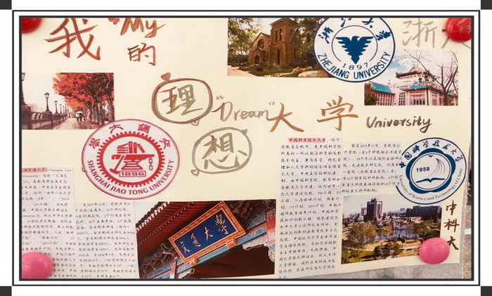 紙上是對理想大學的濃濃情意,心中高唱奮斗之歌,沒有理想的生活是盲目的。理想中的大學猶如一盞明燈,指引著每一位同學逐夢前行。