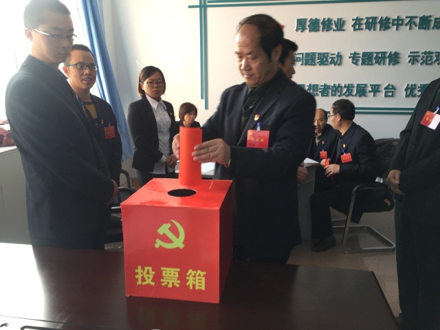 ?大會共分四項議程。第一項由第一屆支部書記田永強同志代表第一屆支部委員會作支部工作報告,報告從四個方面總結了上屆黨支部的工作:一是高度重視,精心組織,認真做好黨員教育工作;二是嚴格審查,積極培養,認真抓好組織建設工作;三是以身作則,率先垂范,認真做好學校教育教學工作;四是統一思想,團結一致,出色完成黨委安排的各項任務。第二項全體黨員認真聽取了工作報告,并審議通過了支部工作報告和支部黨費收繳、使用和管理報告。第三項全體黨員審議通過了支部委員會選舉辦法、支部選舉大會監票人、計票人名單和學校黨委委員選舉大會總監票人、副總監票人、監票人和總計票人、副總計票人、計票人名單。第四項進行支部大會選舉。每位黨員本著認真負責的態度,投下自己神圣的一票,大會選舉產生了新一屆支部書記、委員和第二屆黨委委員候選人。全部黨員表示熱烈祝賀,張書記對支部選舉大會給予了充分的肯定,并鼓勵大家在新一屆支部的帶領下進一步解放思想,扎實工作。